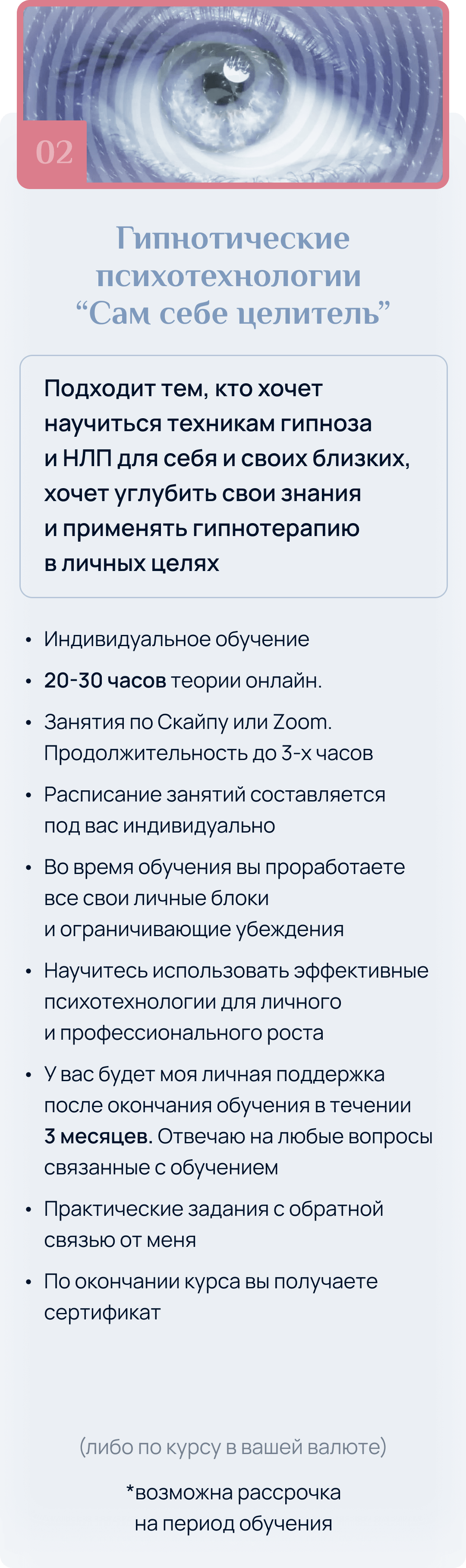 Да, конечно! Это техники, которые доступны каждому! Для эффективного использования техник гипноза необходимо отработать всю техническую часть до автоматизма, выучить все установки, движения, пассы и также проработать свое внутреннее энергетическое состояние. Для этого не нужно психологическое или терапевтическое образование. Знания доступны каждому.